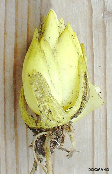 ovoid-globose, ~1.5 cm in diameter; scales yellow.